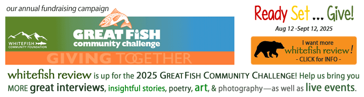 Special thanks to our corporate sponsors: Whitefish Community Foundation, Underscore Art, Whitefish Credit Union, Montana Arts Council, Montana Cultural Trust, Glacier Bank, Whitefish Mountain Resort, Averill Hospitality, The Firebrand Hotel, The Lodge at Whitefish Lake & 101 Central.